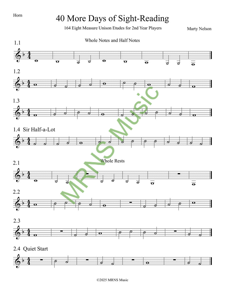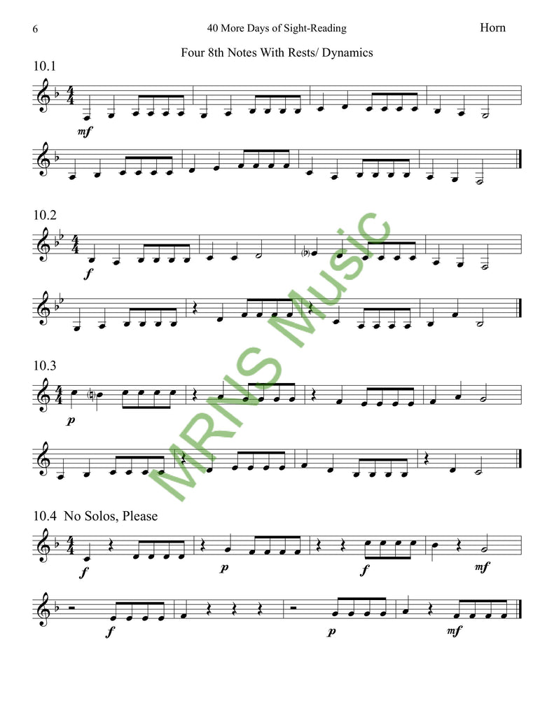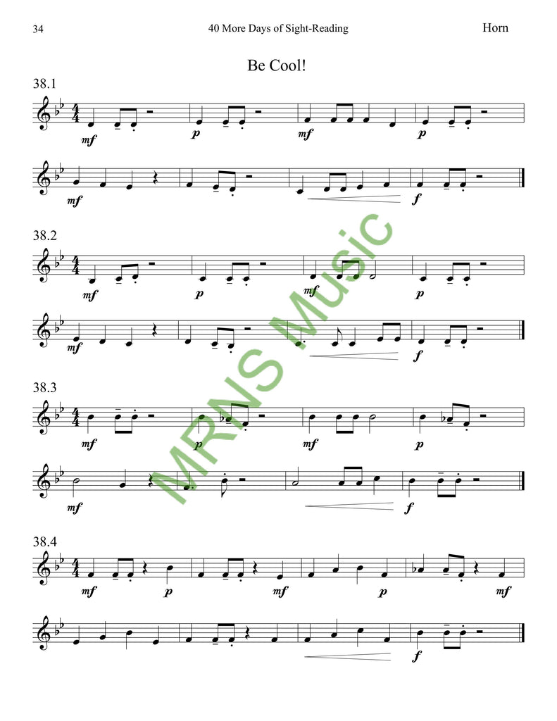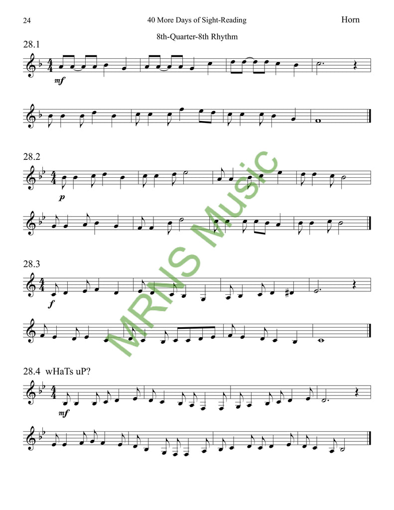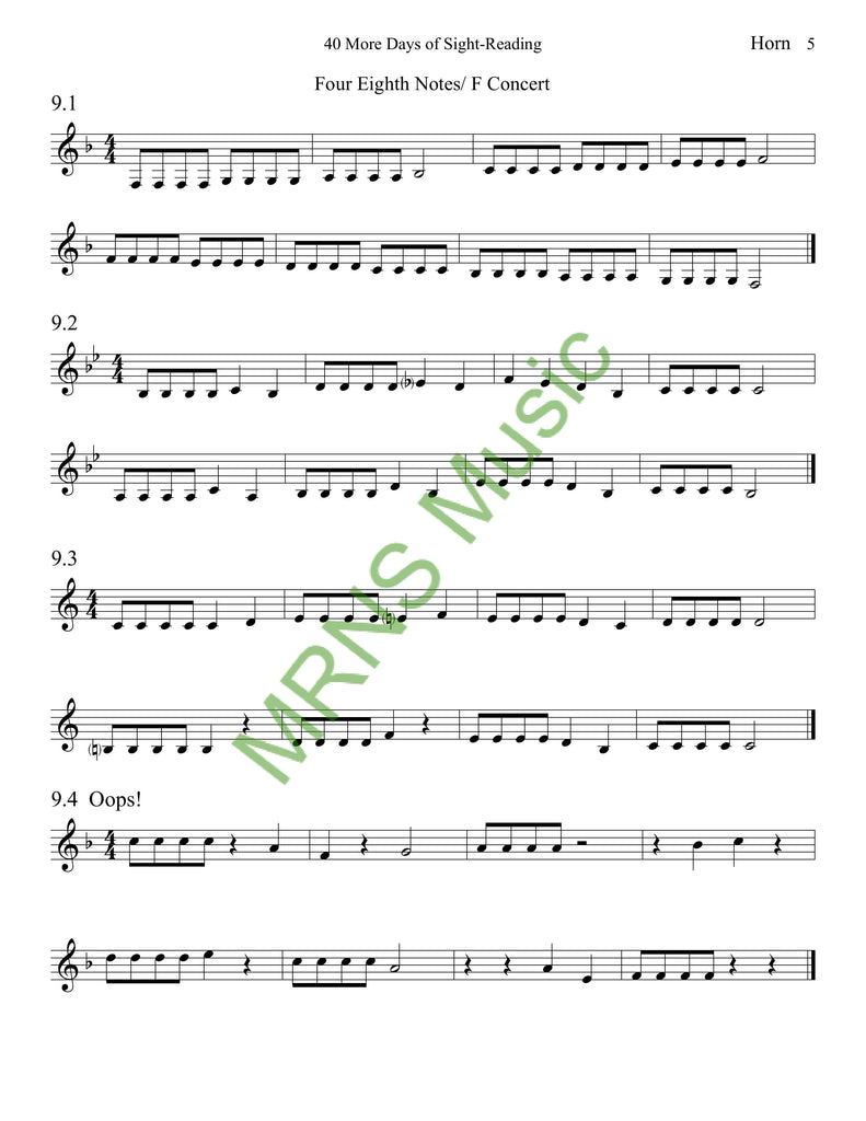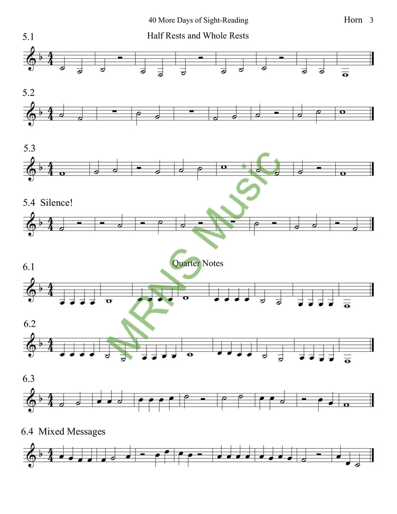 All lines are in unison, and most are 8 measures long. These lines are short to maximize rehearsal time.After the initial start, each page has a line in the key of B-flat, E flat, and F.
