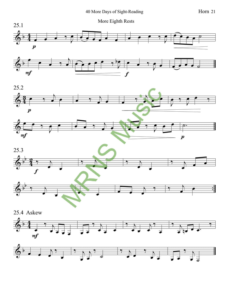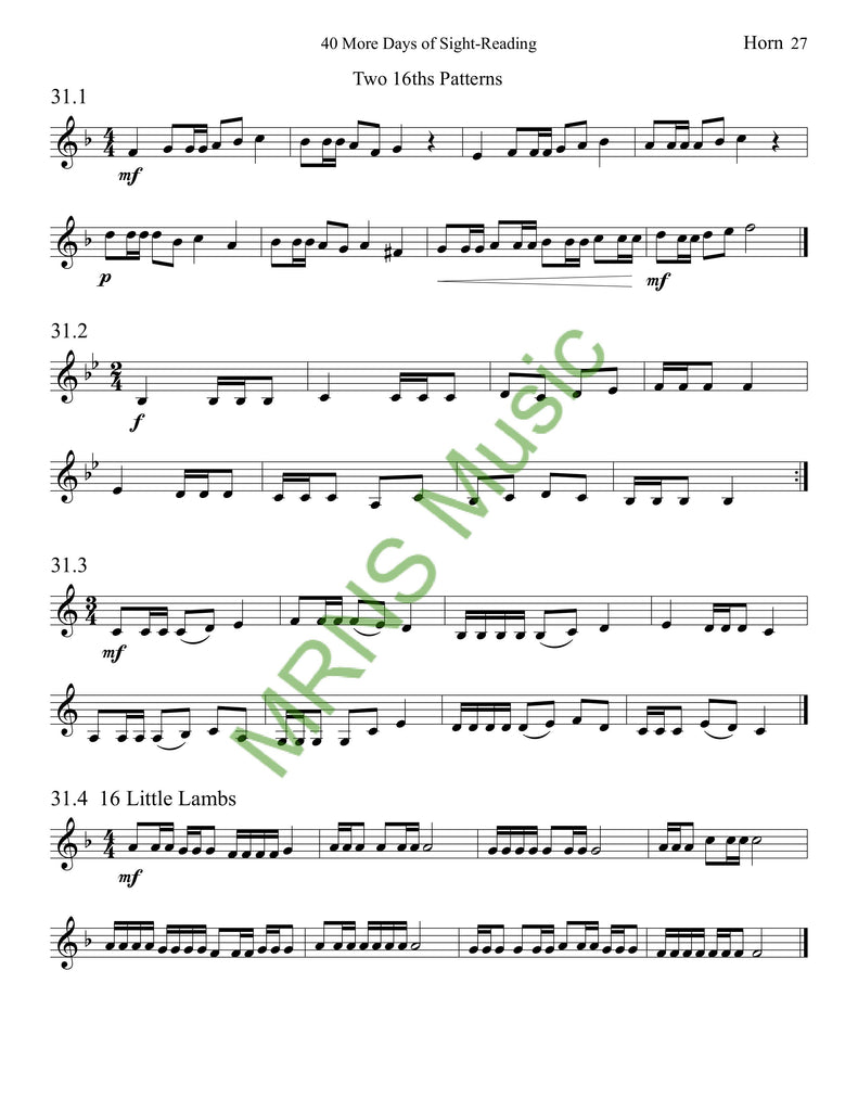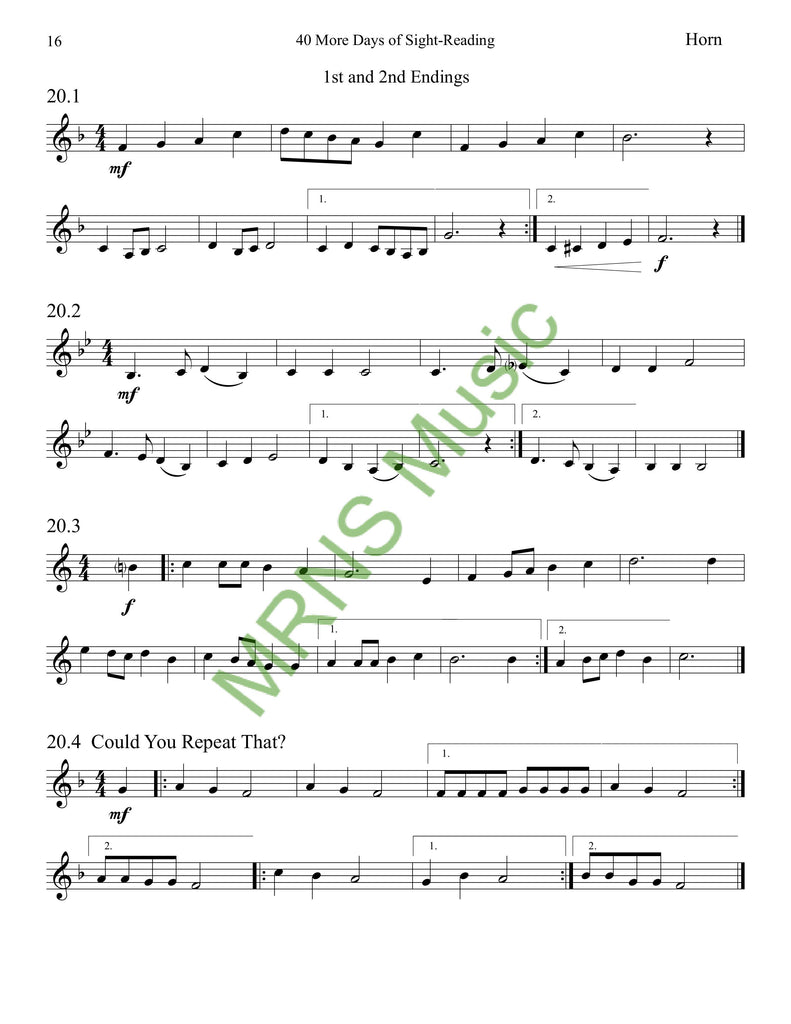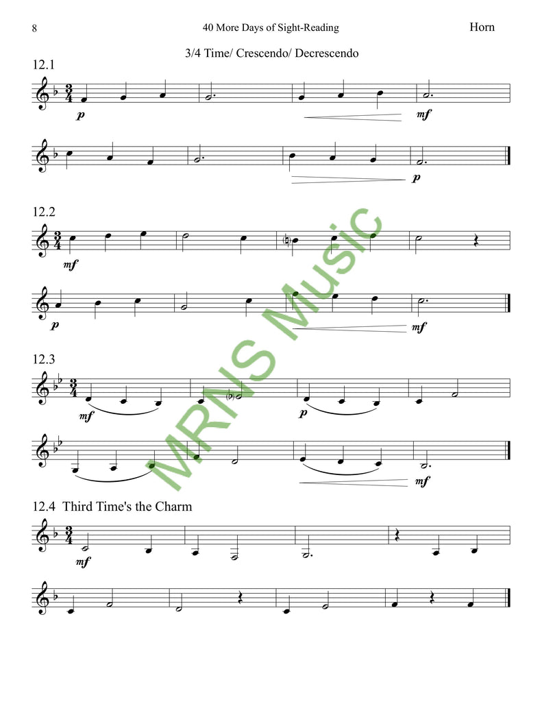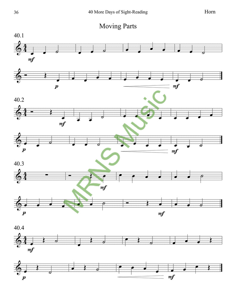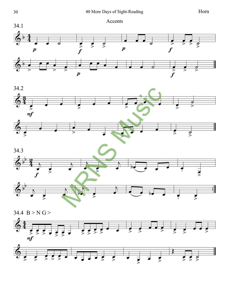 All lines are in unison, and most are 8 measures long. These lines are short to maximize rehearsal time.After the initial start, each page has a line in the key of B-flat, E flat, and F.