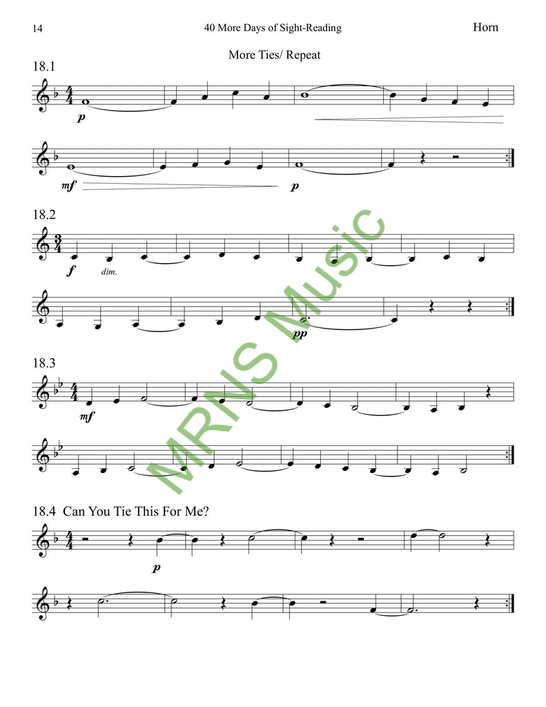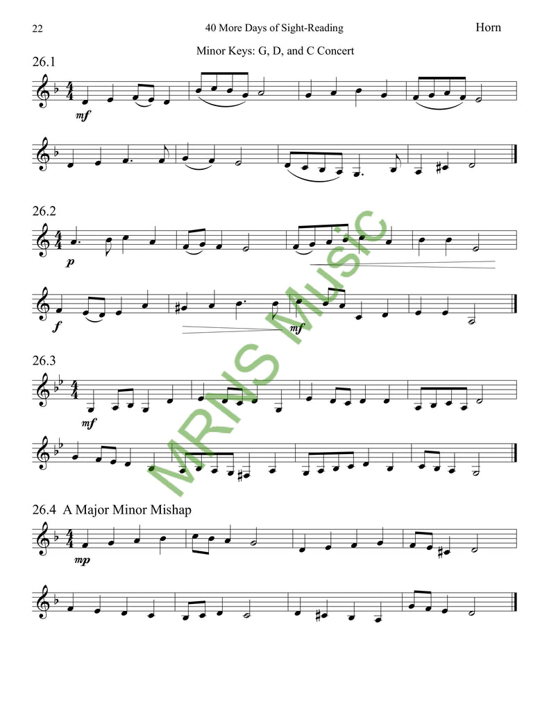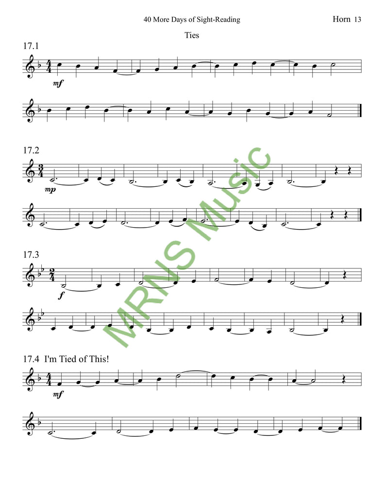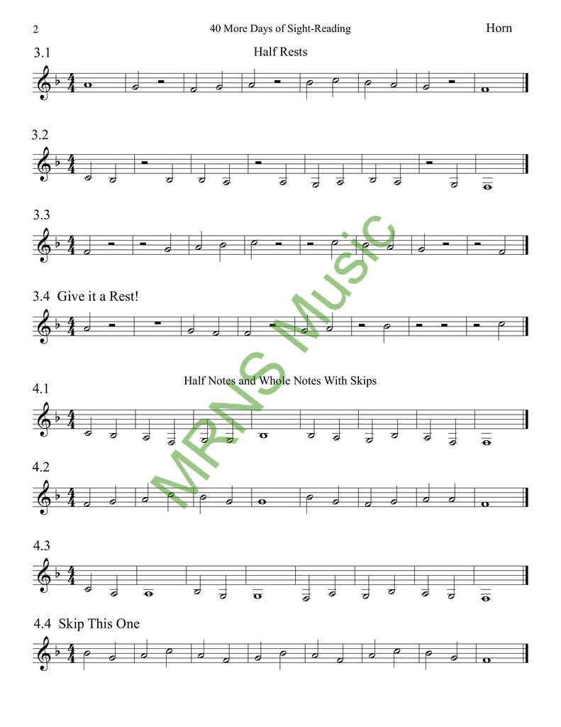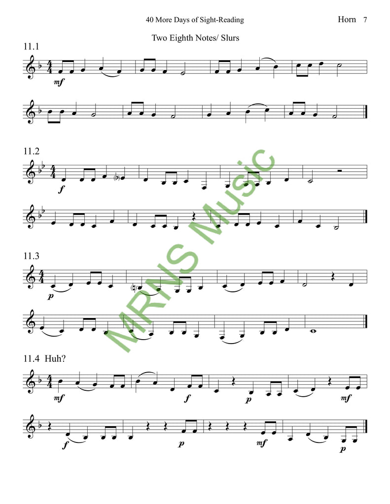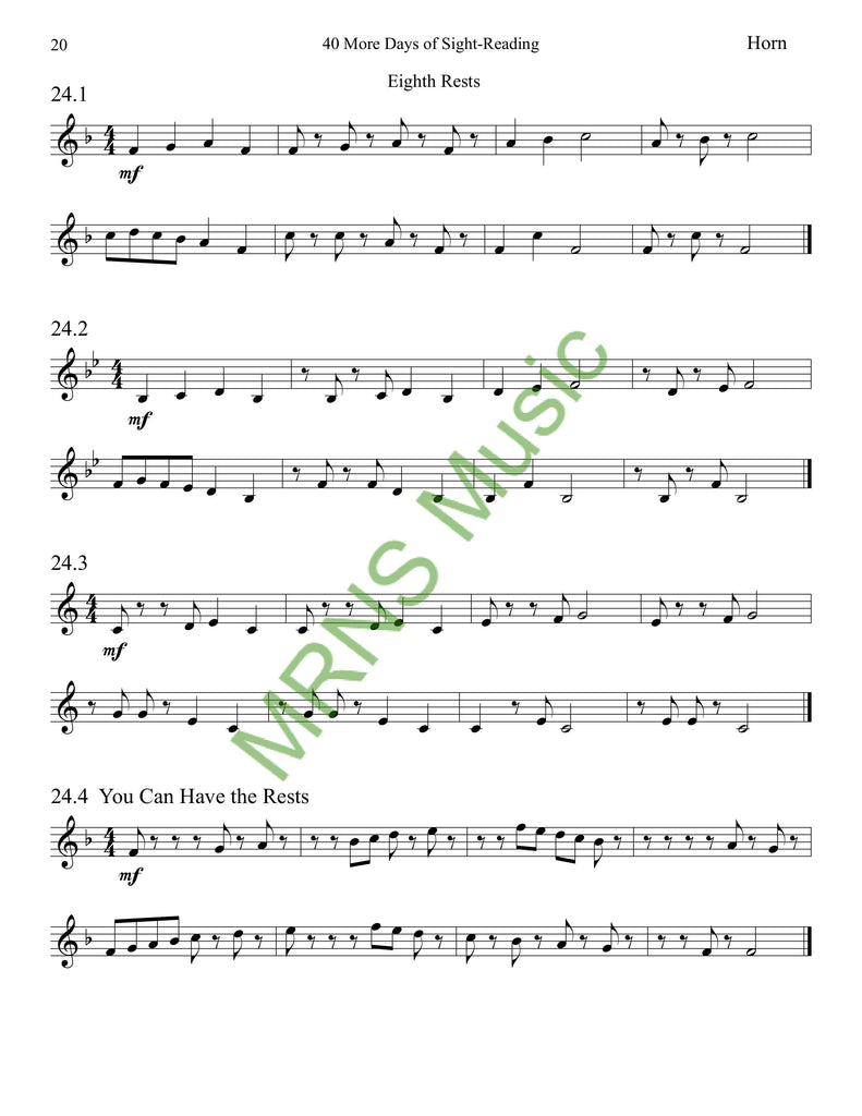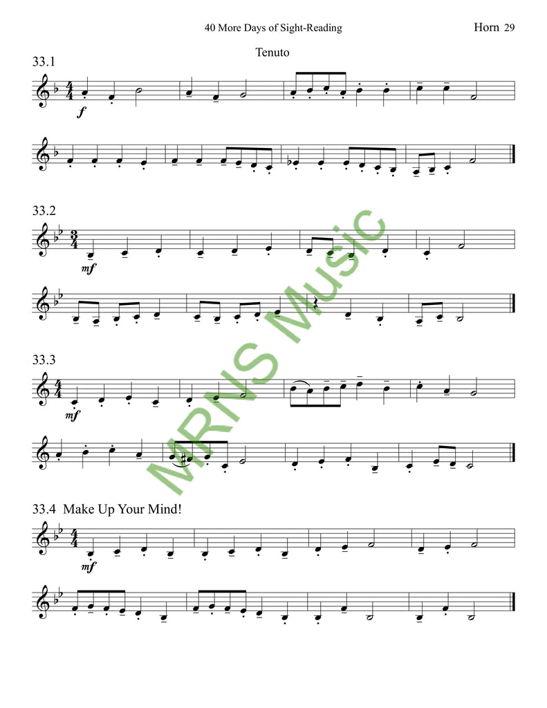 All lines are in unison, and most are 8 measures long. These lines are short to maximize rehearsal time.After the initial start, each page has a line in the key of B-flat, E flat, and F.
