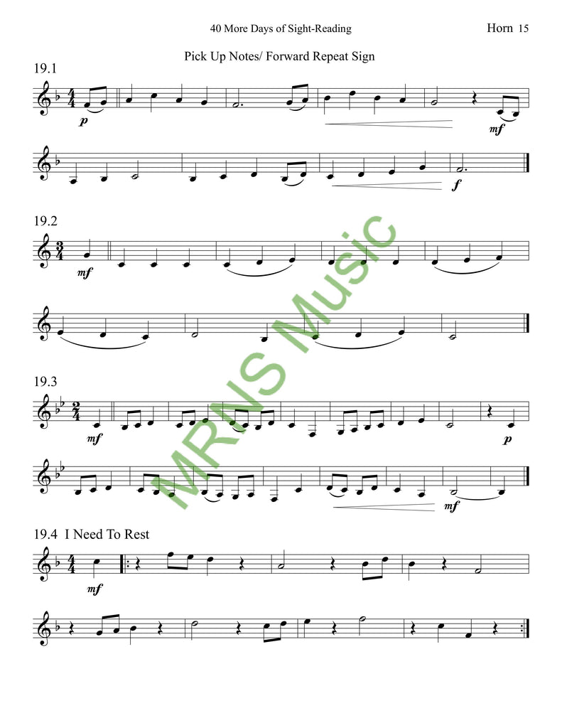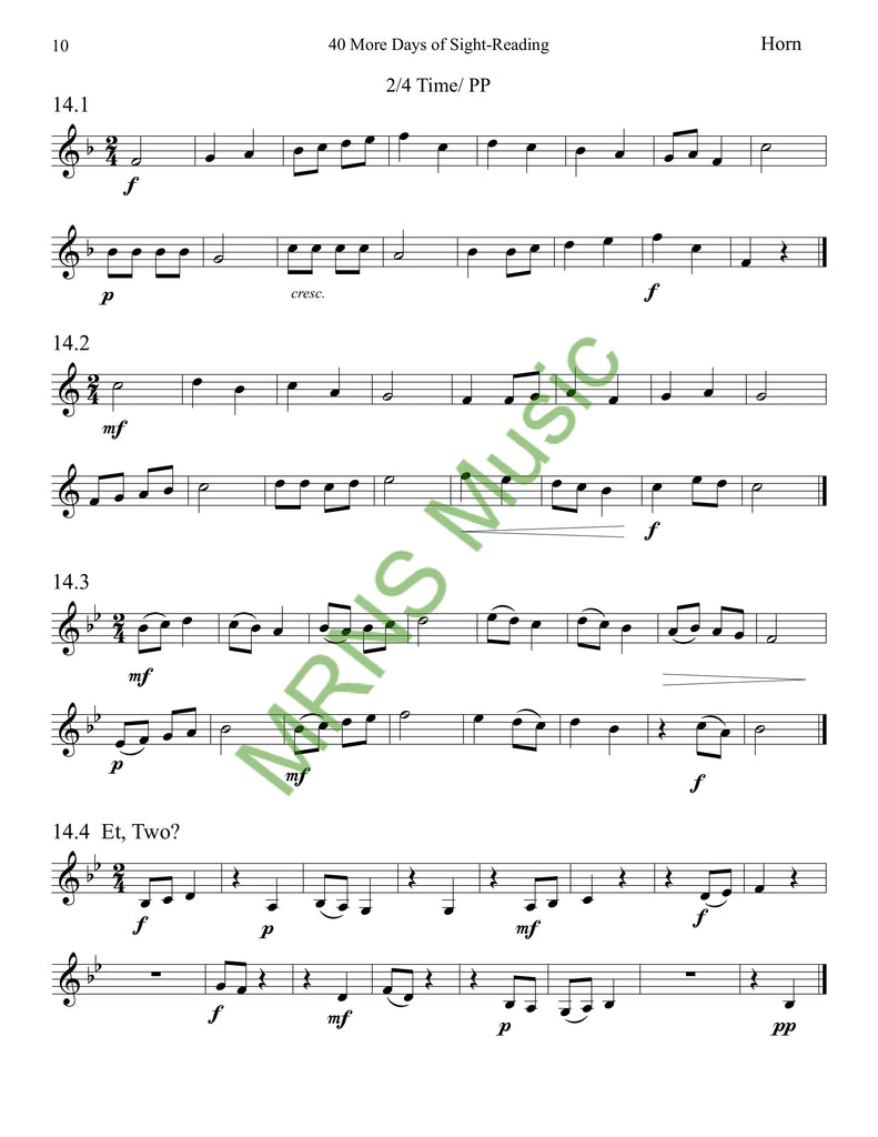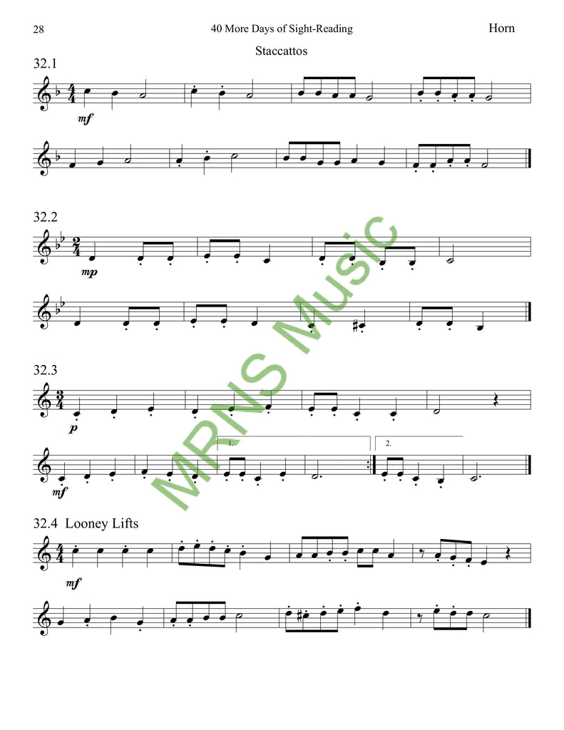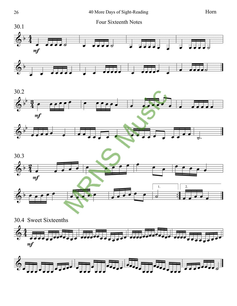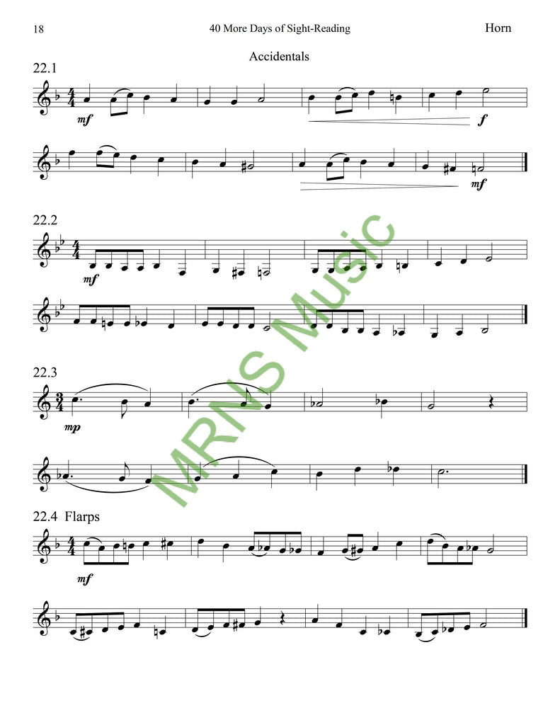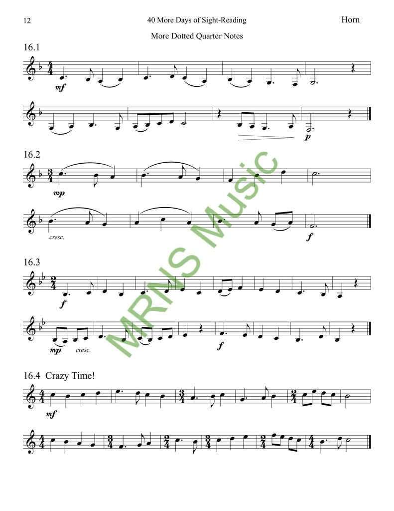 All lines are in unison, and most are 8 measures long. These lines are short to maximize rehearsal time.After the initial start, each page has a line in the key of B-flat, E flat, and F.