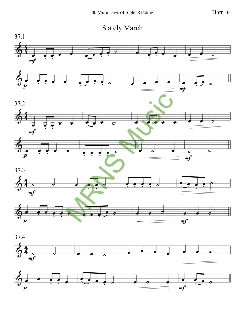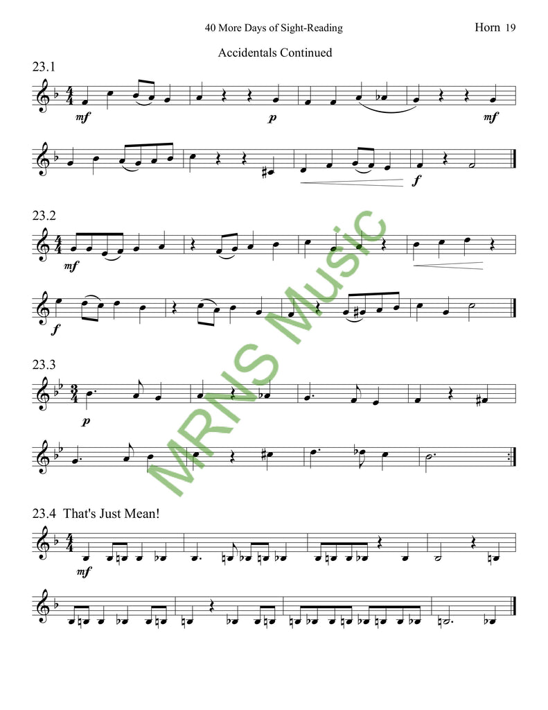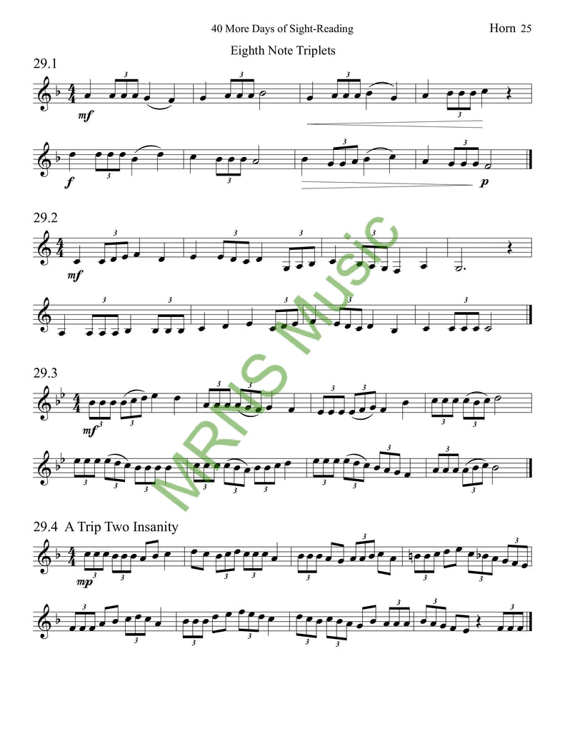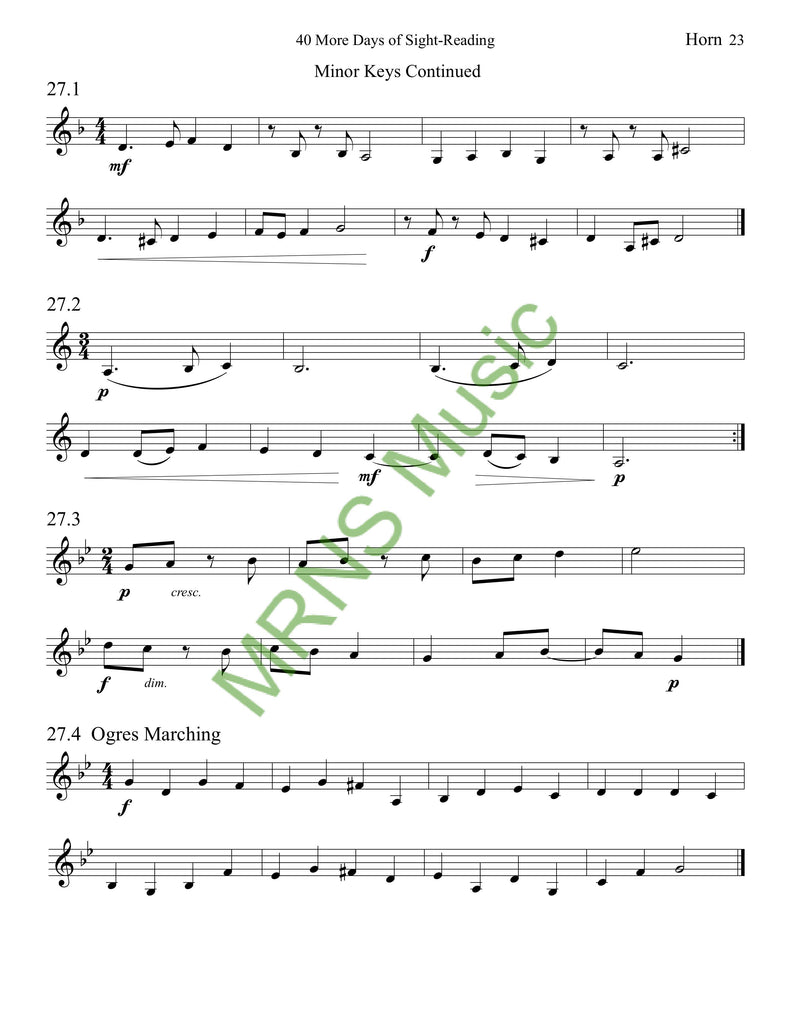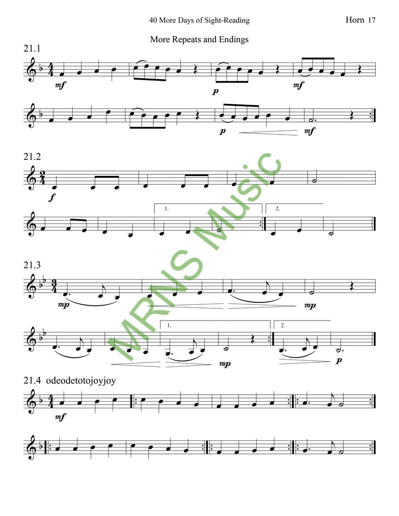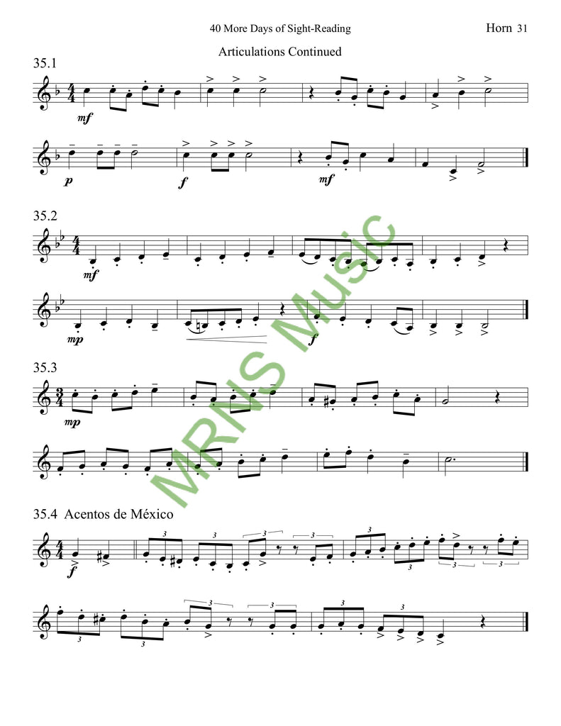 All lines are in unison, and most are 8 measures long. These lines are short to maximize rehearsal time.After the initial start, each page has a line in the key of B-flat, E flat, and F.
