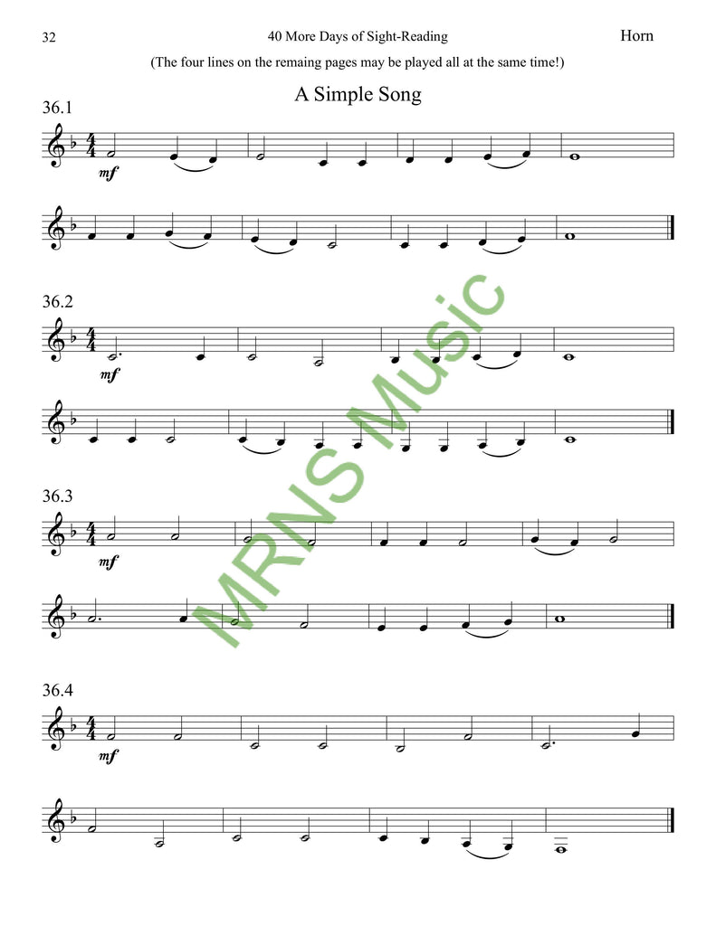 The four lines on days 36-41 may be played at the same time to create a mini song with harmony. These are designed to develop independence.