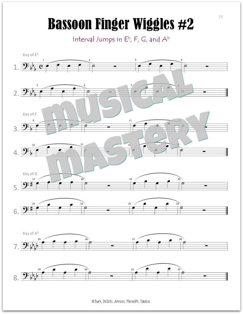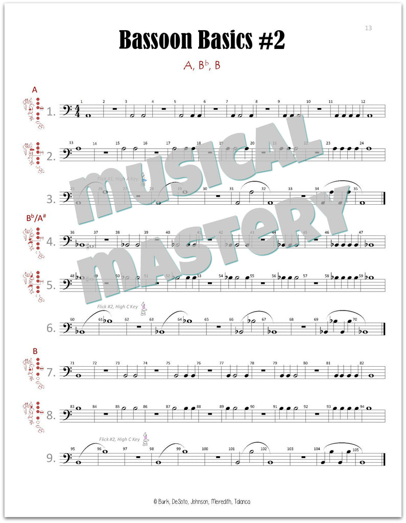 The purpose of this book is to fill in the gaps left by most band method books used in instrumental music classes. This is not intended to be a “stand alone” method, but rather the bulk of what needs to be covered in a beginner band class for students to function independently on instrument specific repertoire and in a performing band situation. The band method book is then used as a supplement to this book, which is more detailed and offers a systematic approach to teaching embouchure, instrument range, alternate fingerings and the correct use of those fingerings, rhythmic reading, and scales. This method of teaching is more chromatic than diatonic based and allows for more in depth study of the tendencies of the individual instruments, embouchure for various ranges, and specific fingering uses.