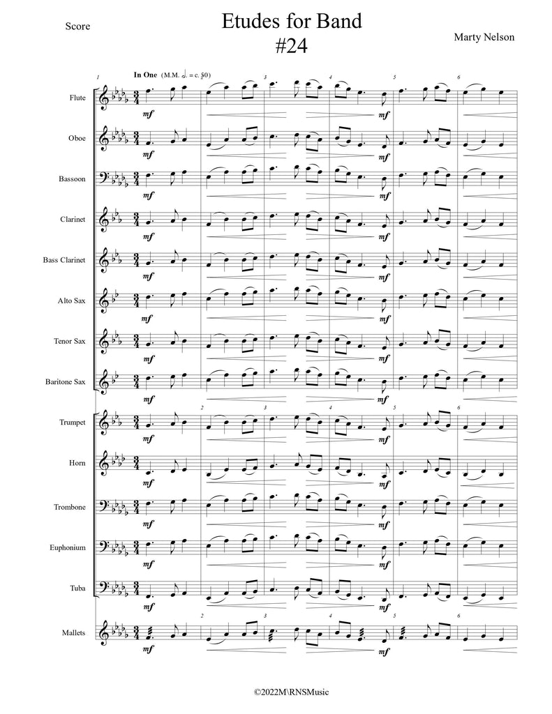 Etudes for Band is a collection of unison etudes for full band. Many of these etudes were written for various auditions. Others were intended as exercises for my trumpet students. Some etudes were composed for the woodwind section and transcribed for brass and mallets… and vice versa.
