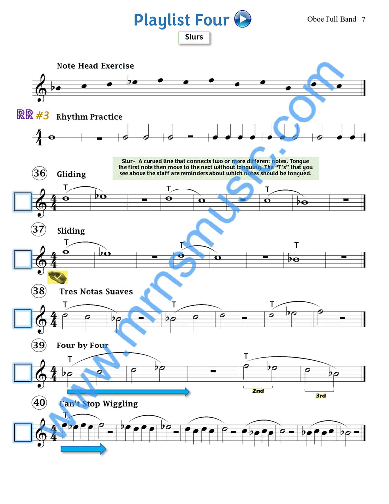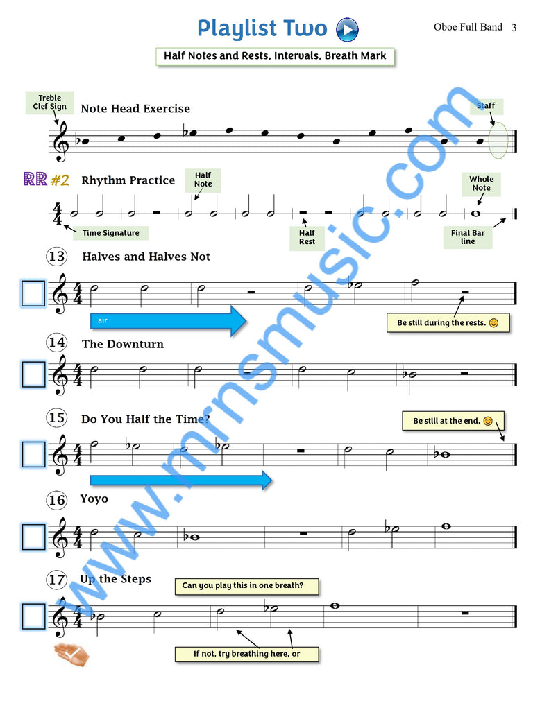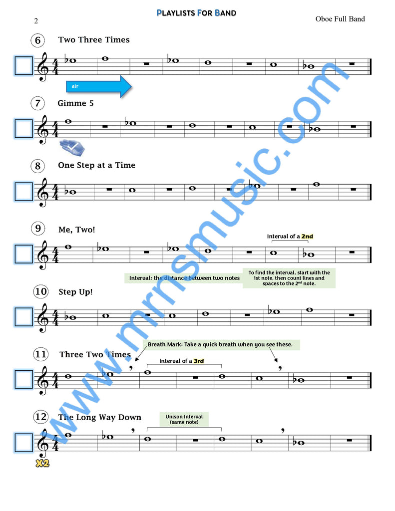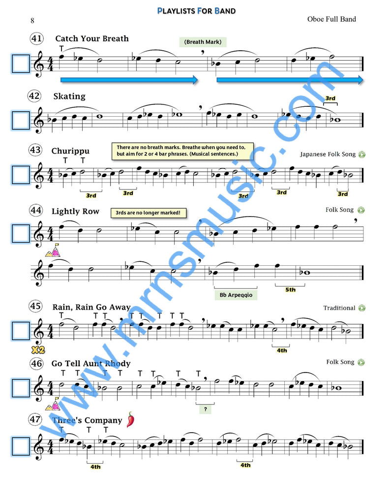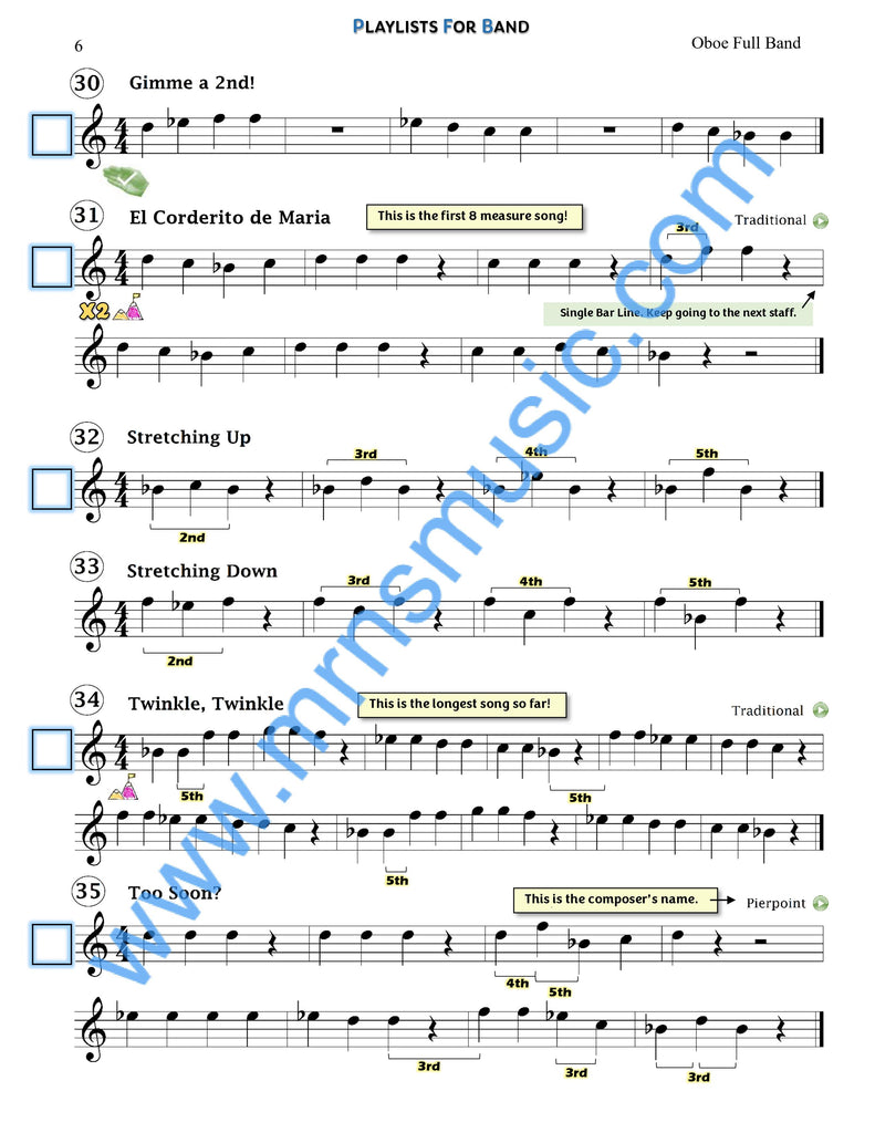The PFB Oboe Book has an extra section provided for the oboe class. It starts in the key of F and runs from lesson One to Seven.