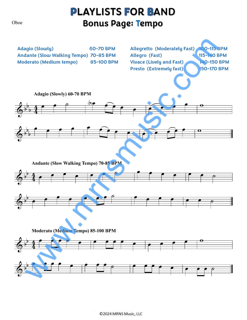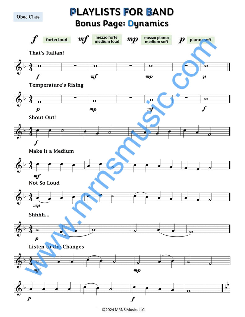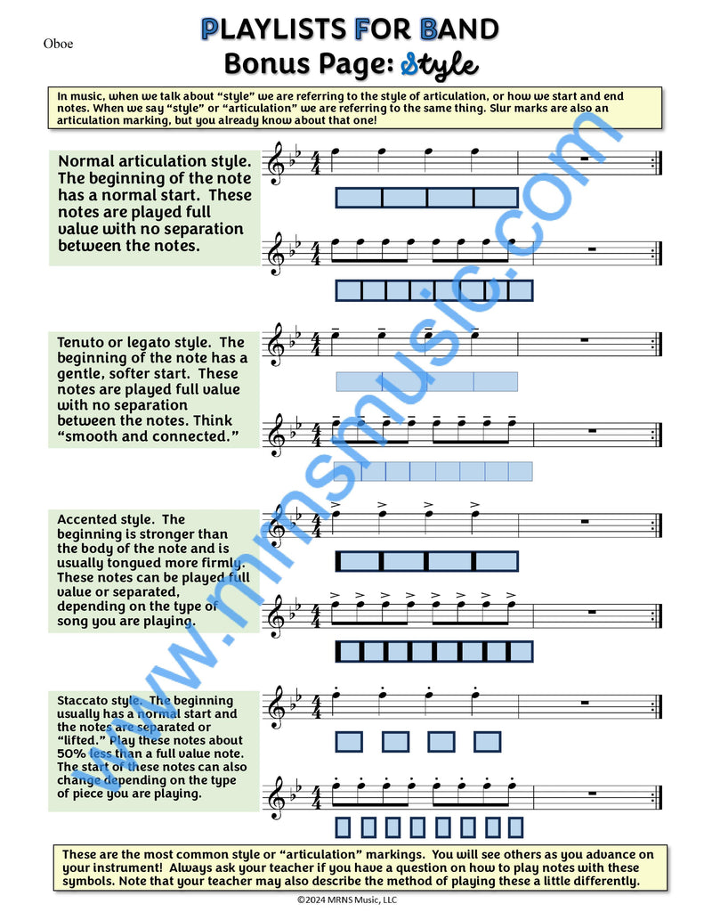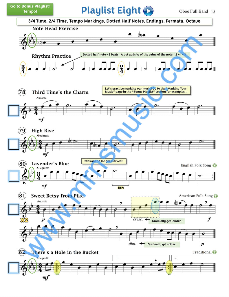 Bonus playlists to teach dynamics, style and tempo. Plus a “Marking Your Music” page.