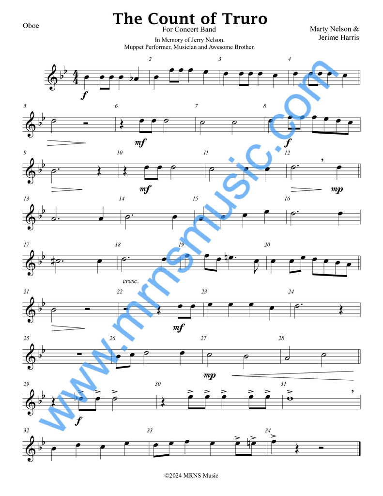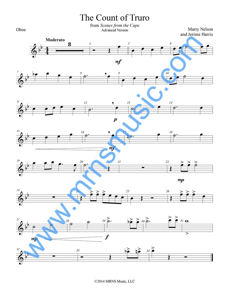 The Count of Truro for Oboe and Piano. This solo could also be used as a solo part with the full band arrangement. This march-like solo would be great to use as a class solo at the end of the first year.
