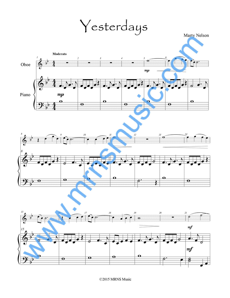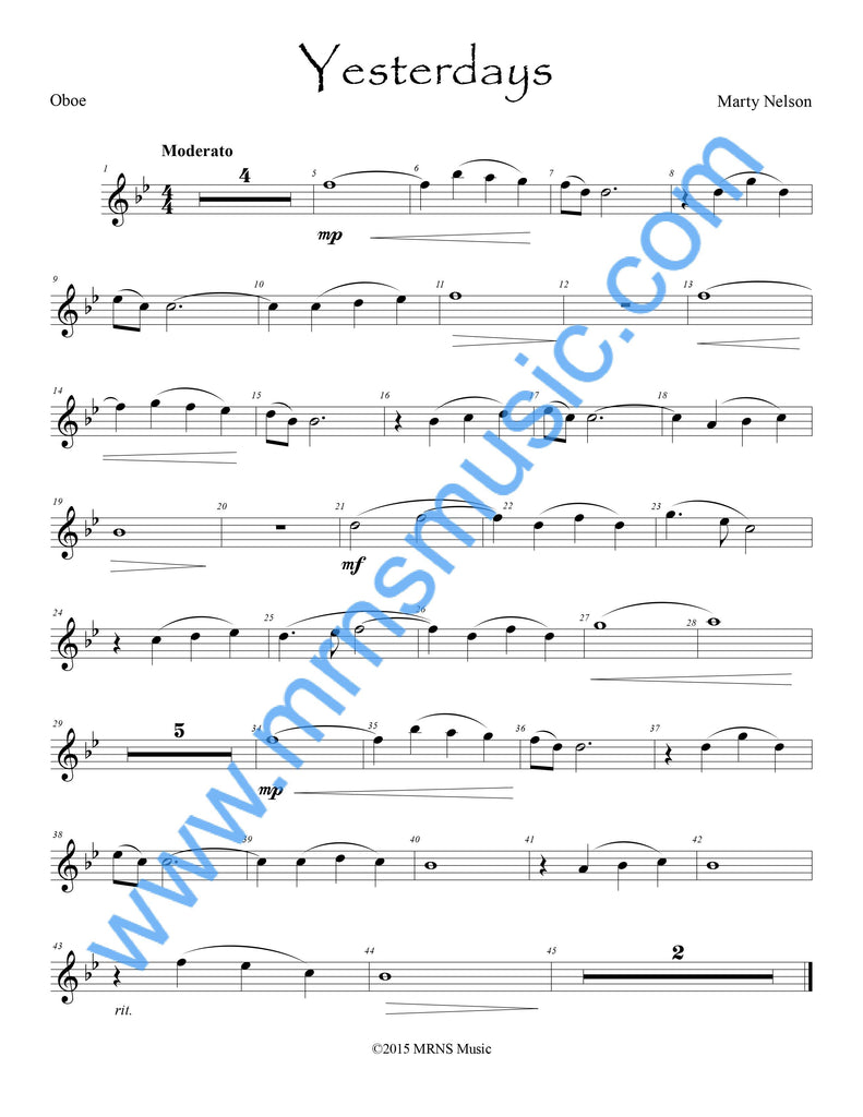 Yesterdays solo for Oboe and Piano. A pretty, lyrical solo for the end of the first year.