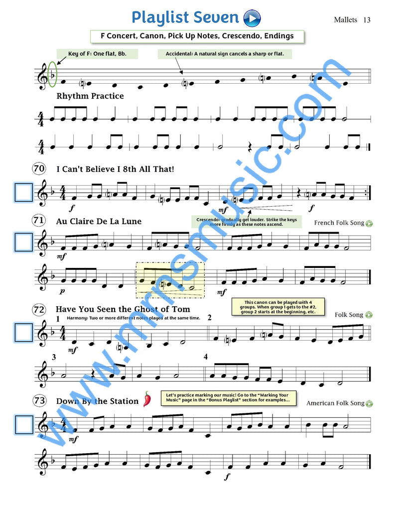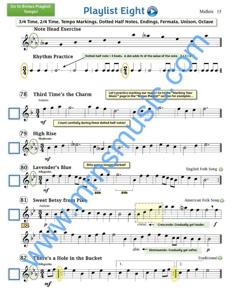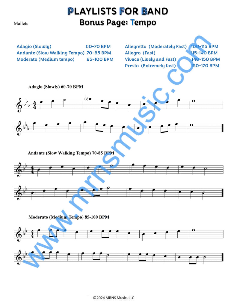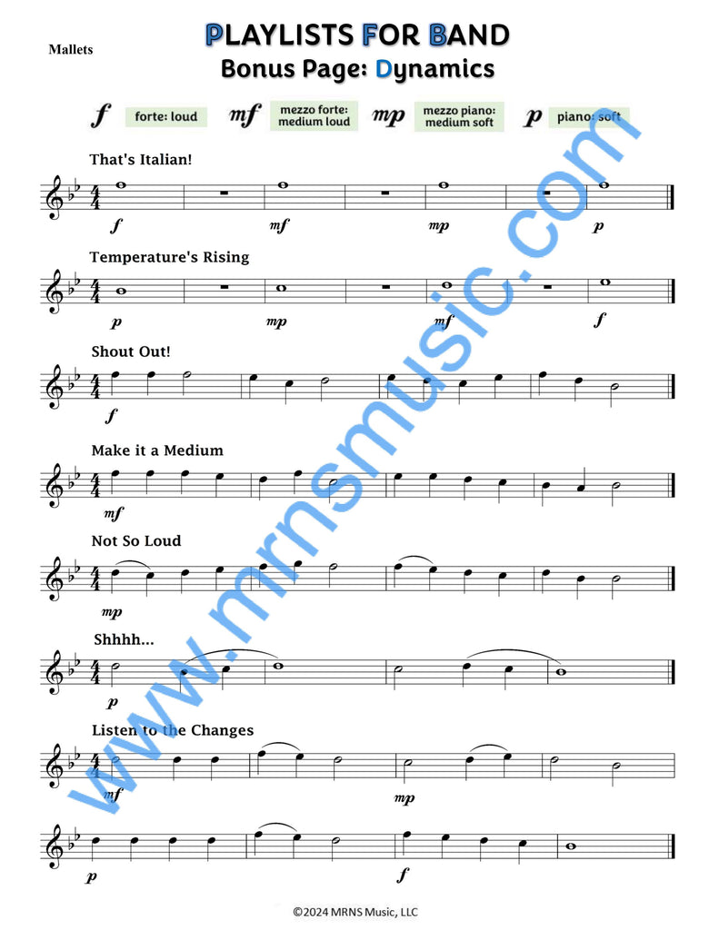 Bonus playlists to teach dynamics, style and tempo. Plus a “Marking Your Music” page.