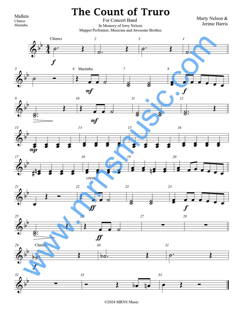The Count of Truro for full band mallet part. Perfect for the spring concert at the end of the first year.