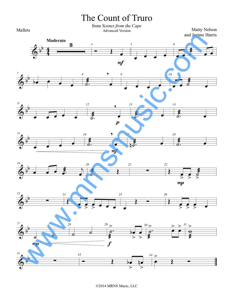 The Count of Truro for Mallets and Piano. This solo could also be used as a solo part with the full band arrangement. This march-like solo would be great to use as a class solo at the end of the first year.