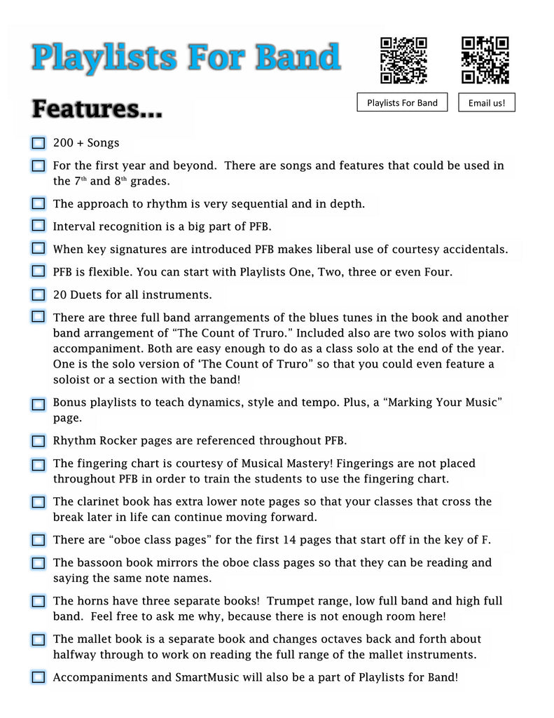 200 + songs to the first year and beyond.  There are songs and features that could be used in the first, second and third year of band.