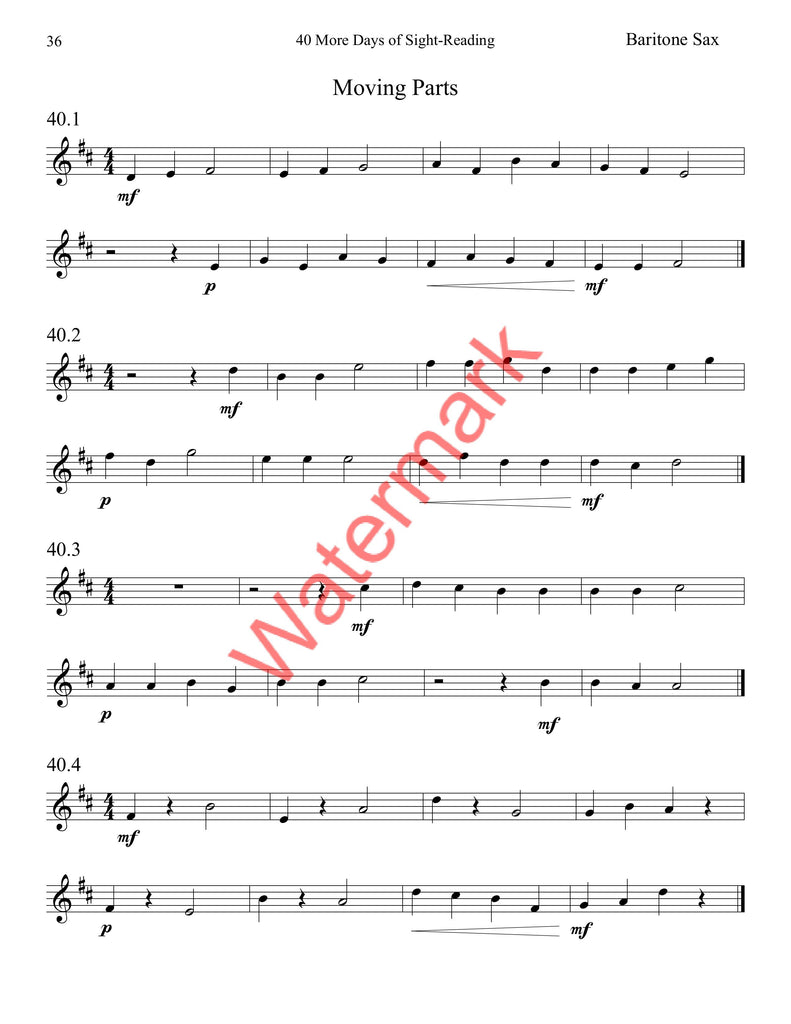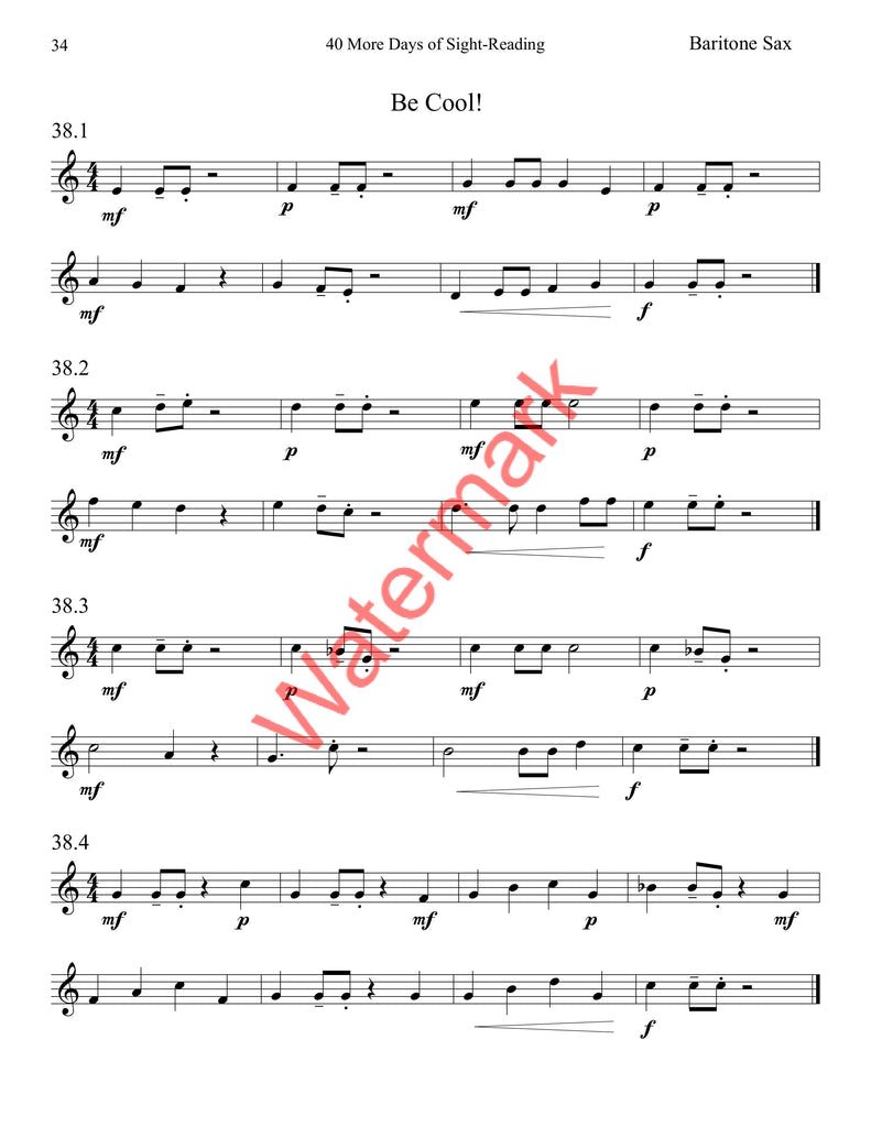 All lines are in unison, and most are 8 measures long. These lines are short to maximize rehearsal time.After the initial start, each page has a line in the key of B-flat, E flat, and F.