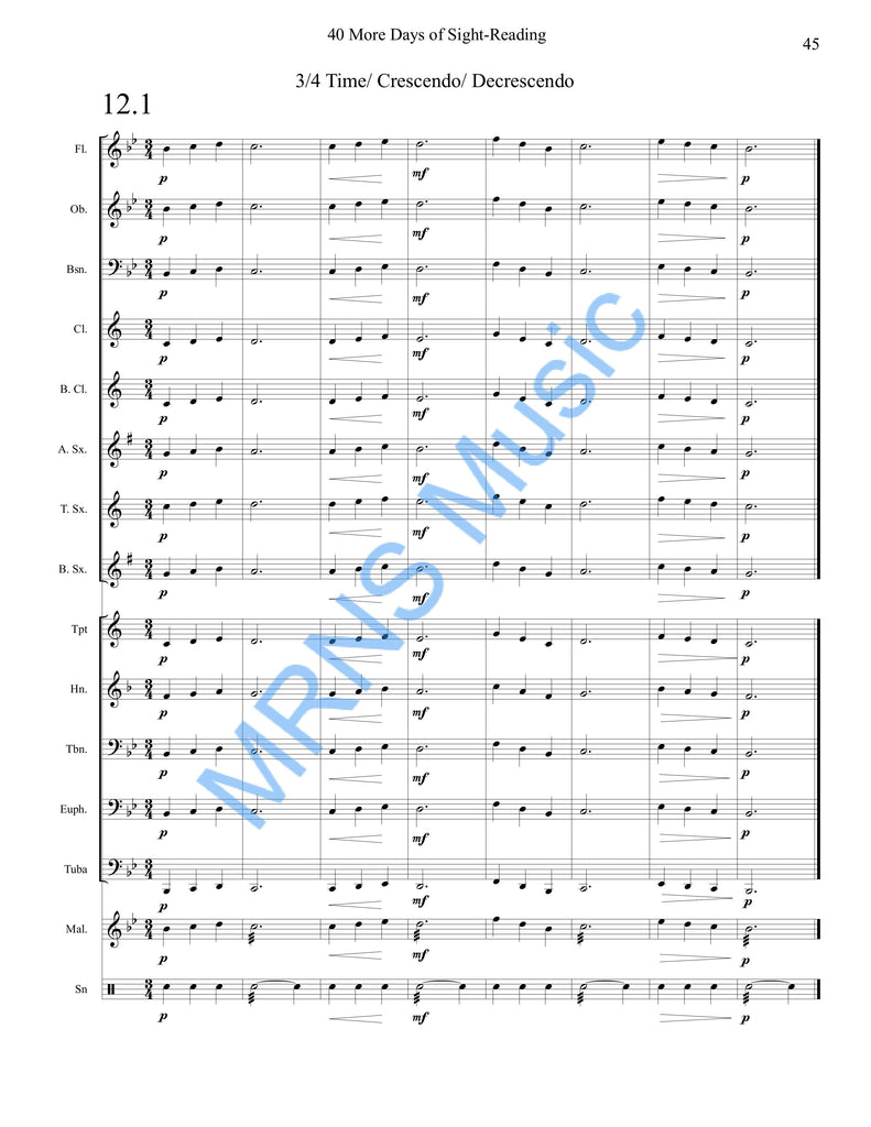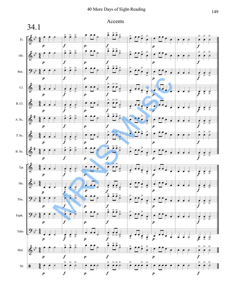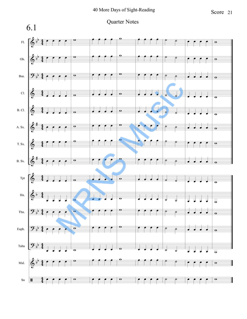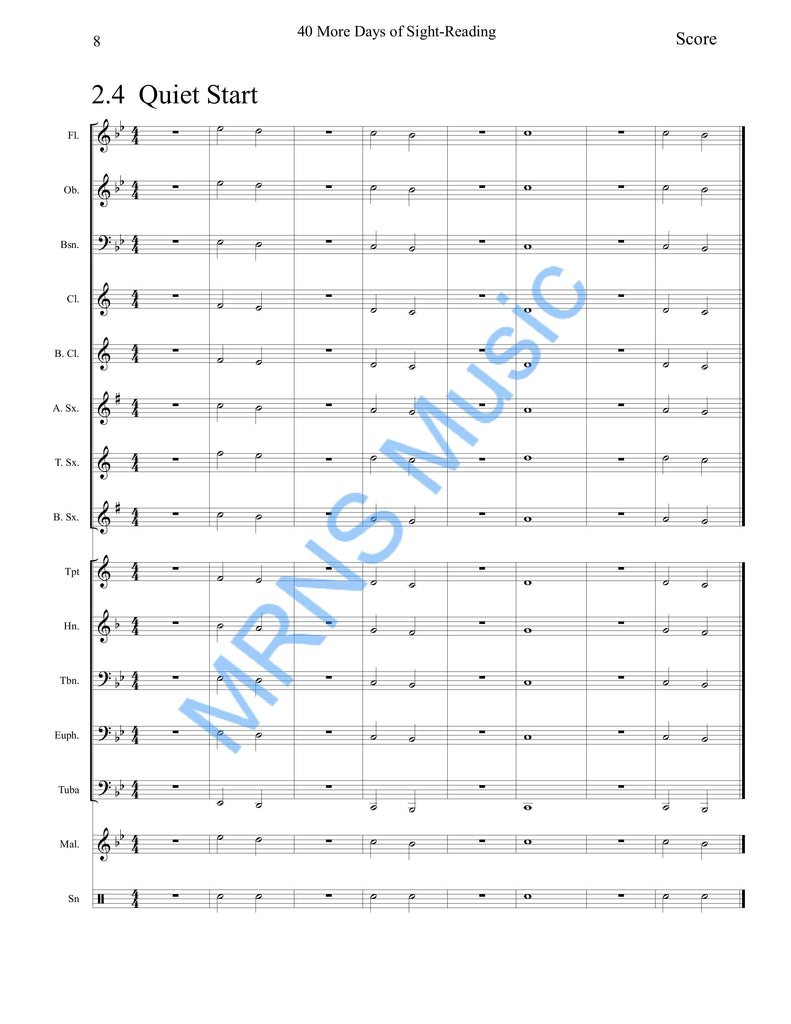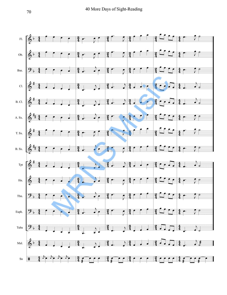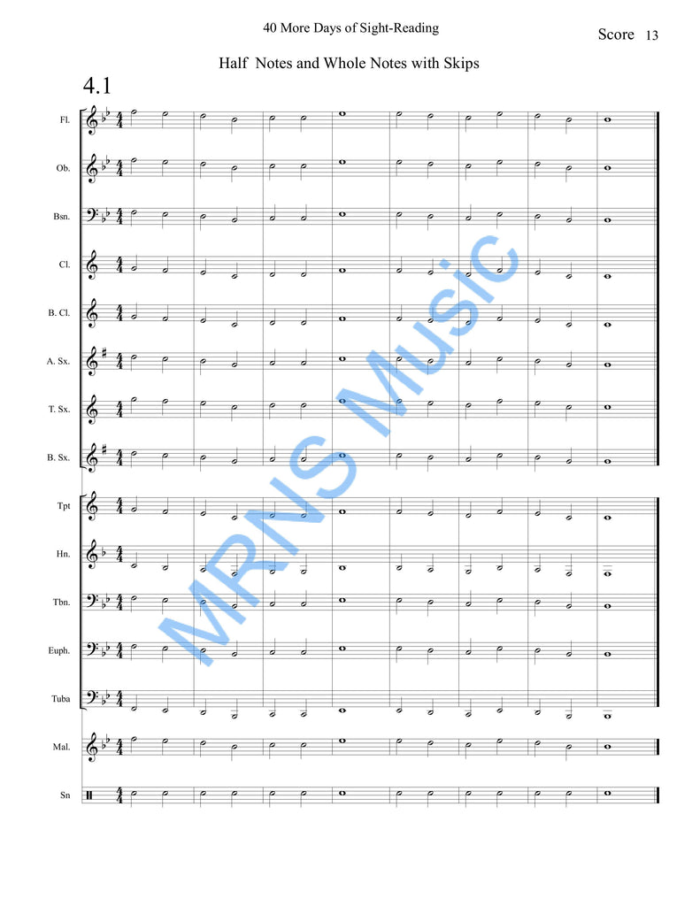 All lines are in unison, and most are 8 measures long. These lines are short to maximize rehearsal time.After the initial start, each page has a line in the key of B-flat, E flat, and F.