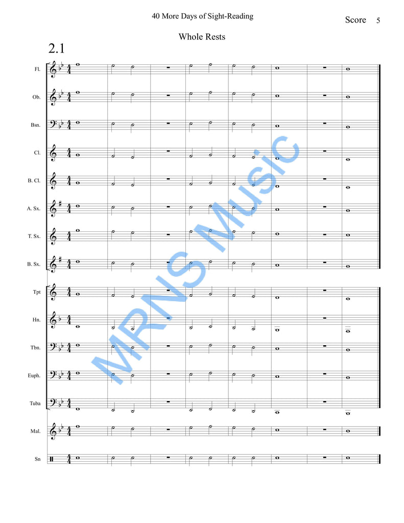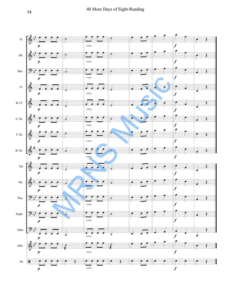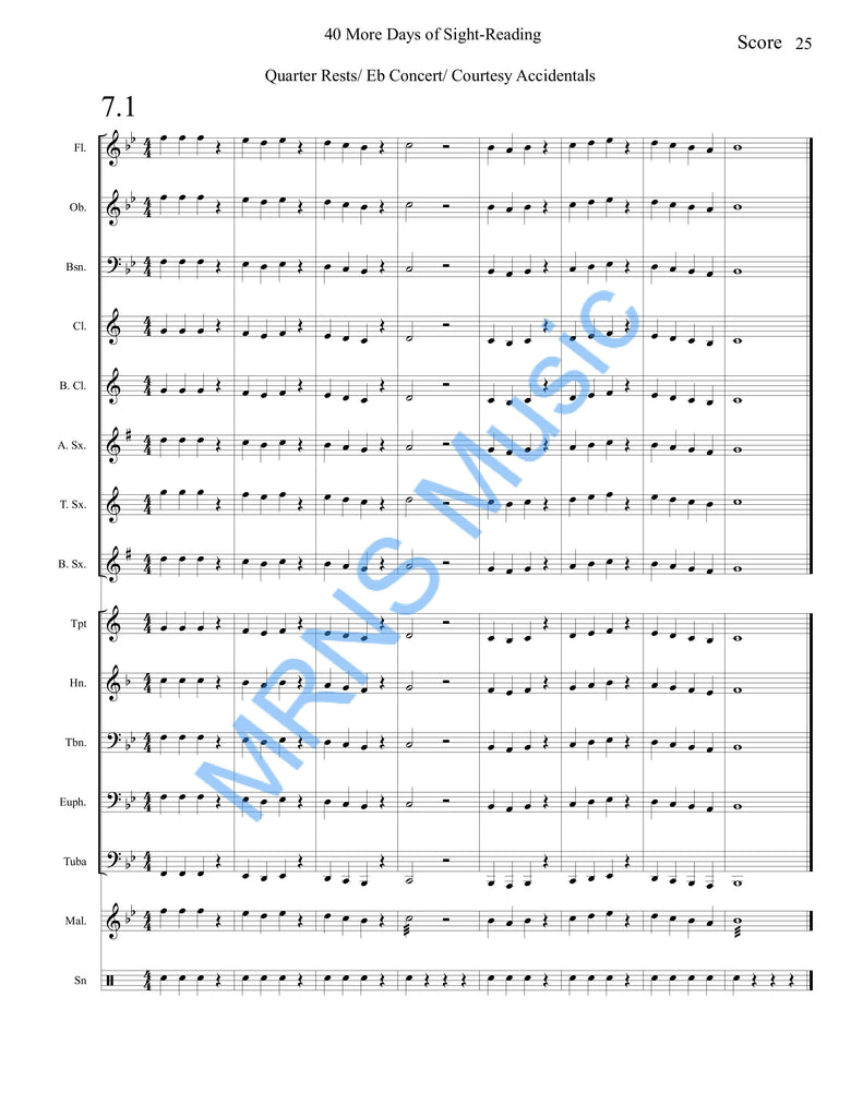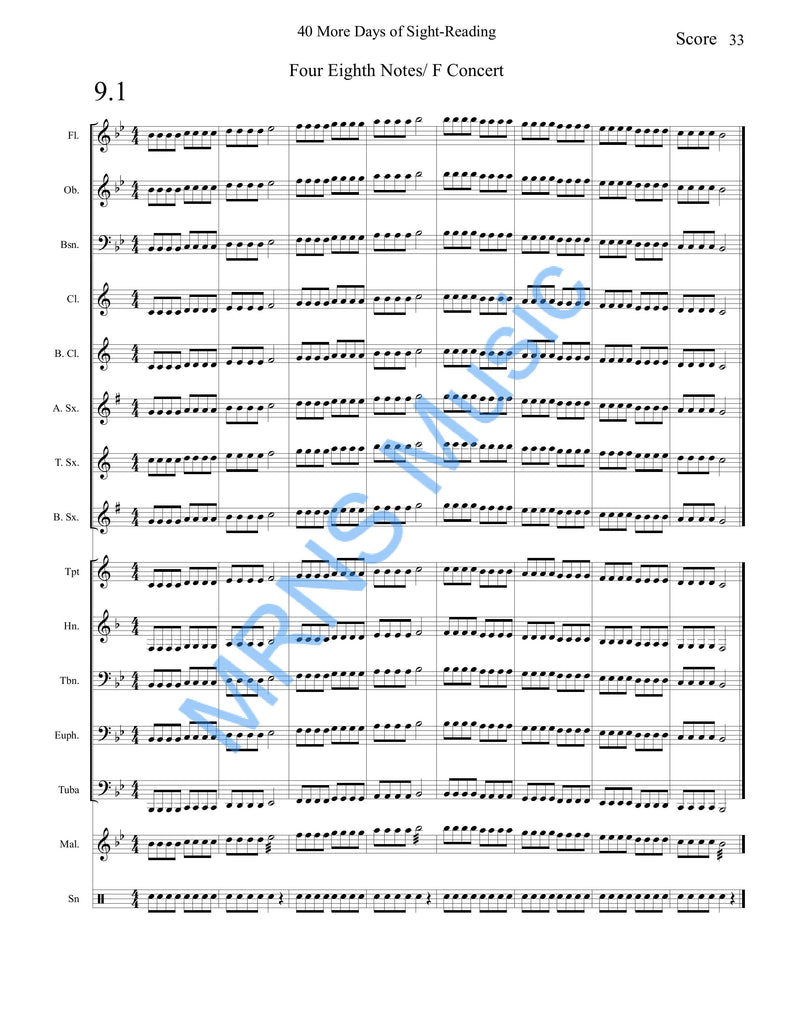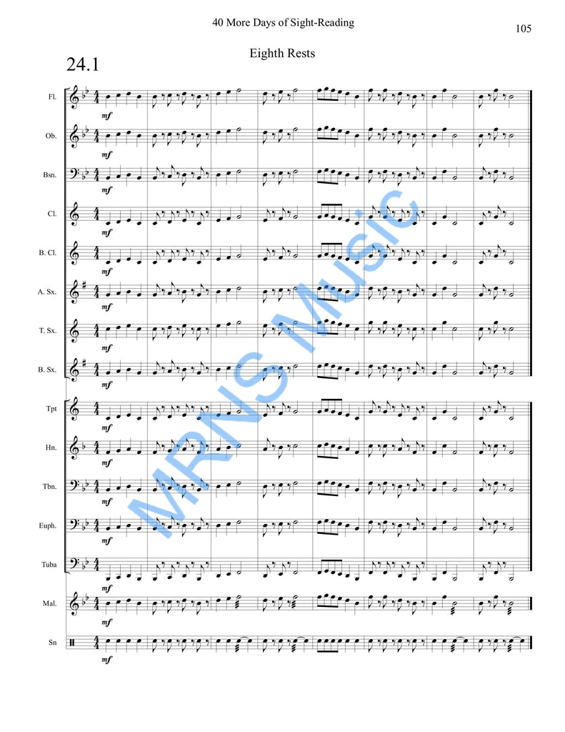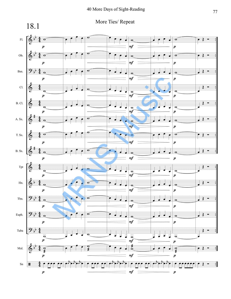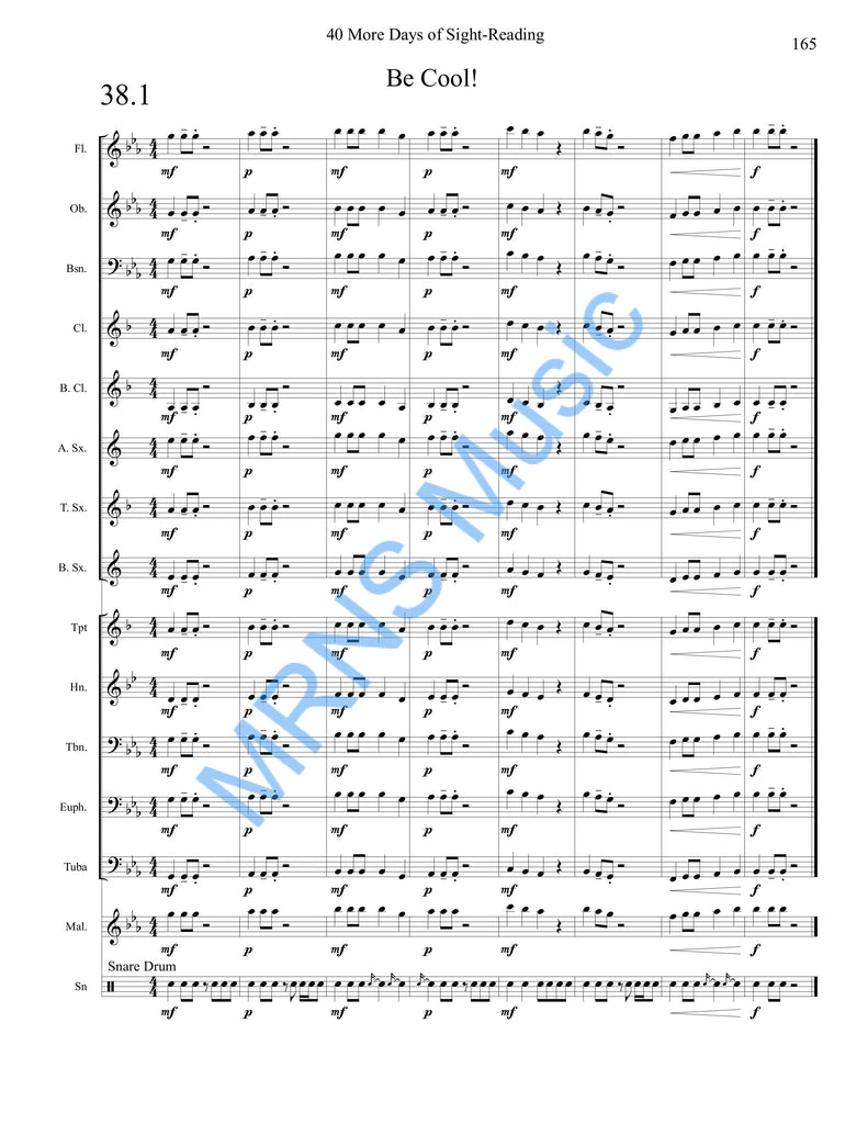All lines are in unison, and most are 8 measures long. These lines are short to maximize rehearsal time.After the initial start, each page has a line in the key of B-flat, E flat, and F.