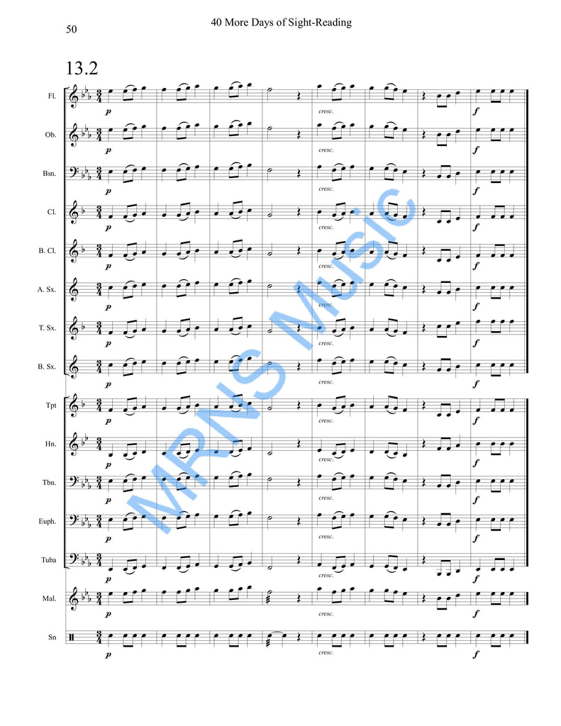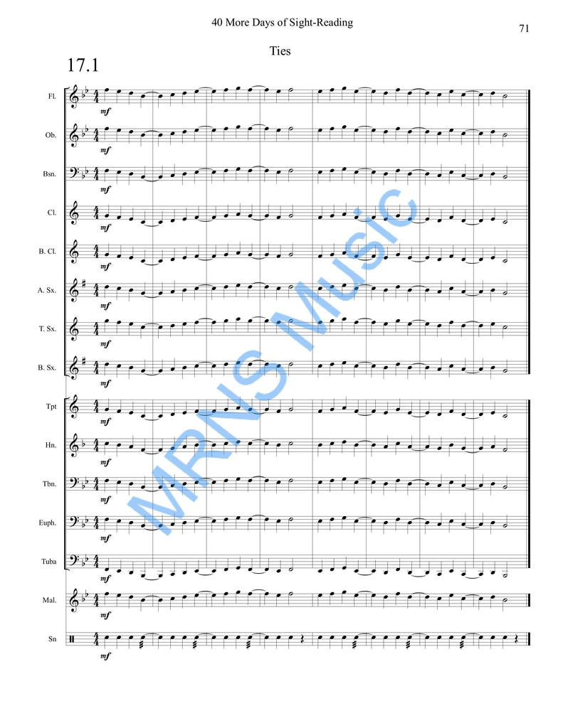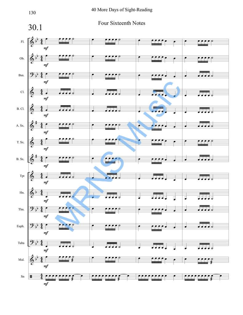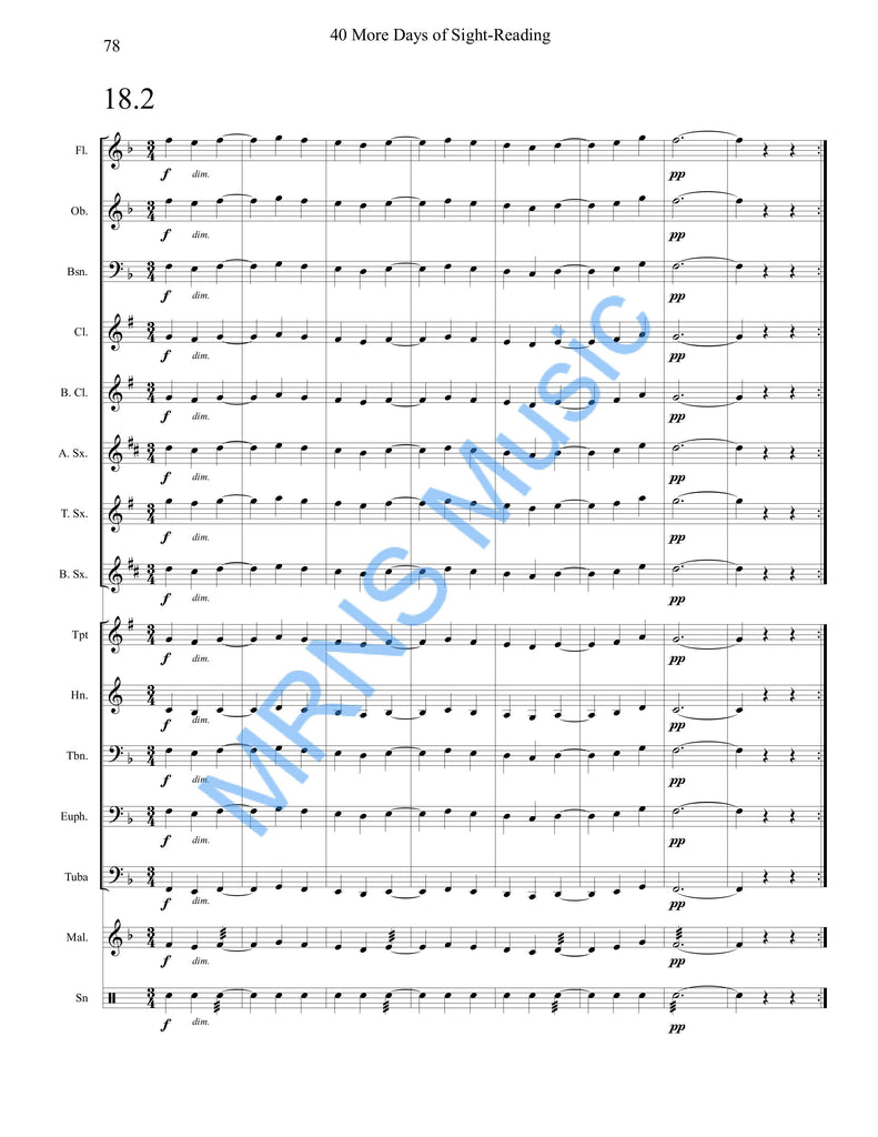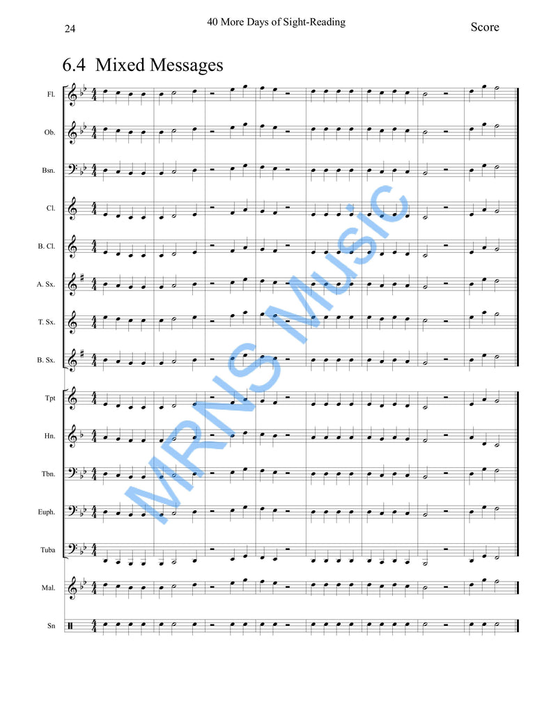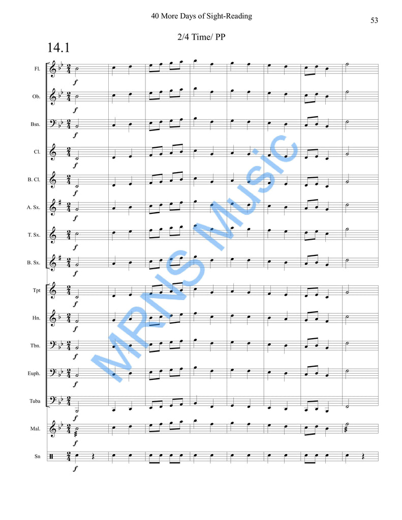 All lines are in unison, and most are 8 measures long. These lines are short to maximize rehearsal time.After the initial start, each page has a line in the key of B-flat, E flat, and F.