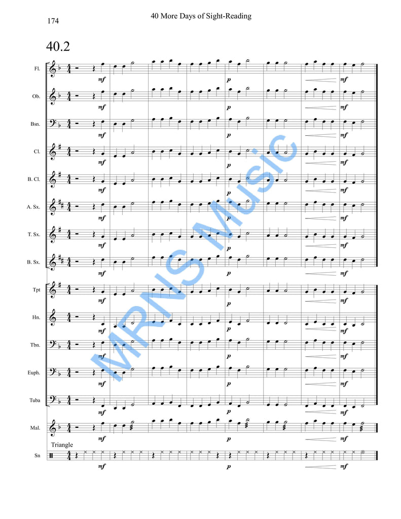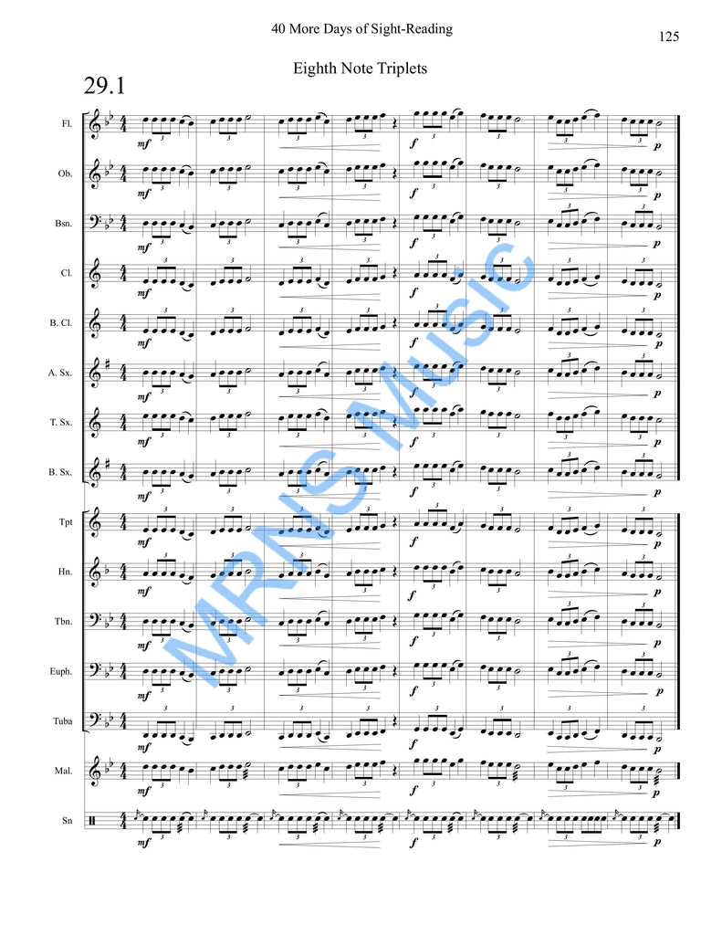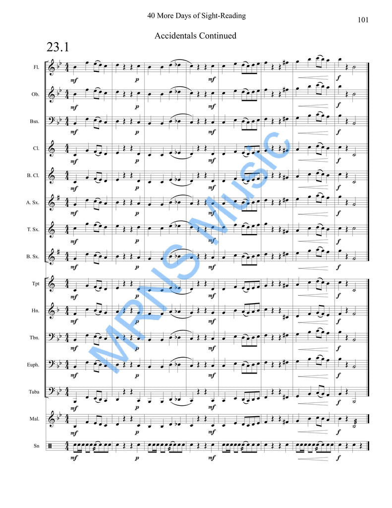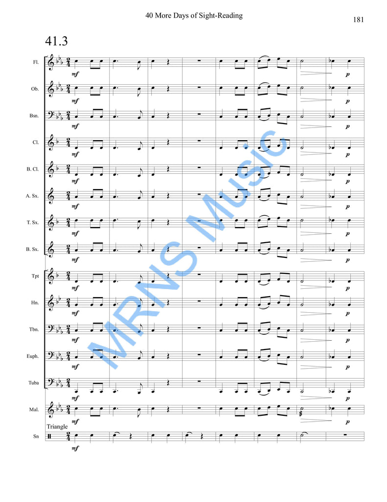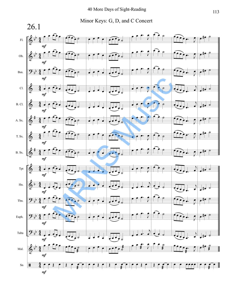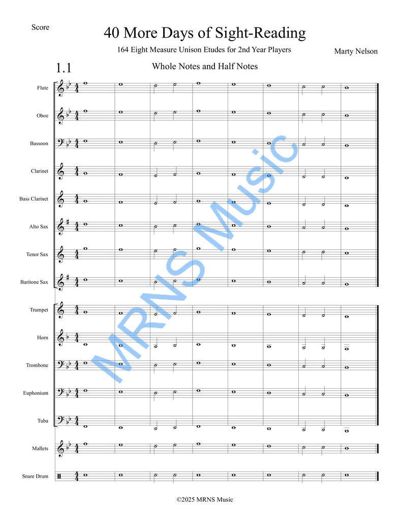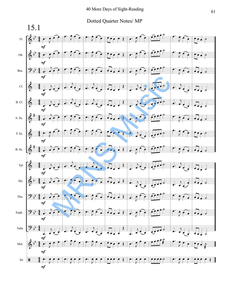 All lines are in unison, and most are 8 measures long. These lines are short to maximize rehearsal time.After the initial start, each page has a line in the key of B-flat, E flat, and F.
